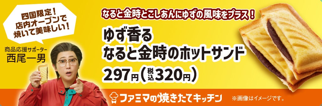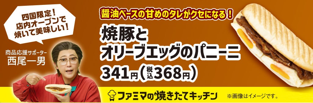 【四国地方限定】店内オーブンで焼き上げる「ファミマの焼きたてキッチン」より四国限定オリジナルメニュー2種類を11月12日発売!友近さんが演じる「西尾一男」が応援サポーターに!