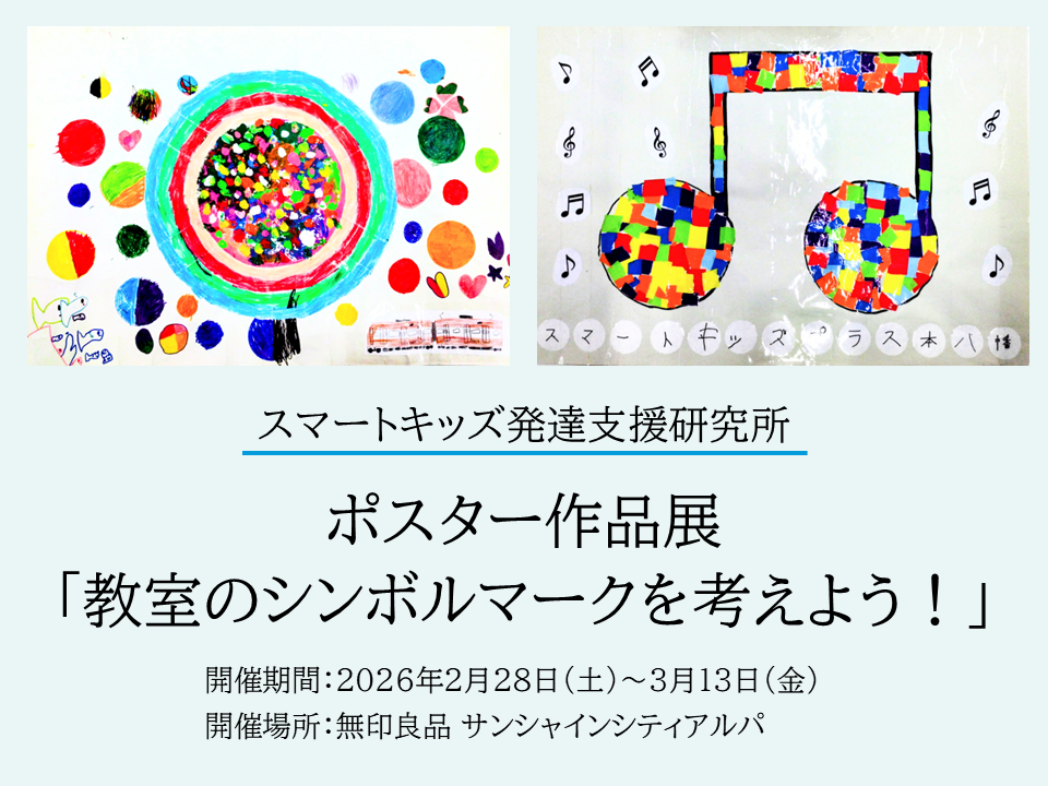 株式会社増進会ホールディングス(Z会グループ)のグループ会社、スマートキッズ株式会社(本社:東京都千代田区、代表取締役社長:野村景子)が運営する「スマートキッズ発達支援研究所」は、児童発達支援・放課後等デイサービス「スマートキッズ」の各教室に通所する子どもたちのポスター作品展「教室のシンボルマークを考えよう!」を2026年2月28日(土)~3月13日(金)に開催します。