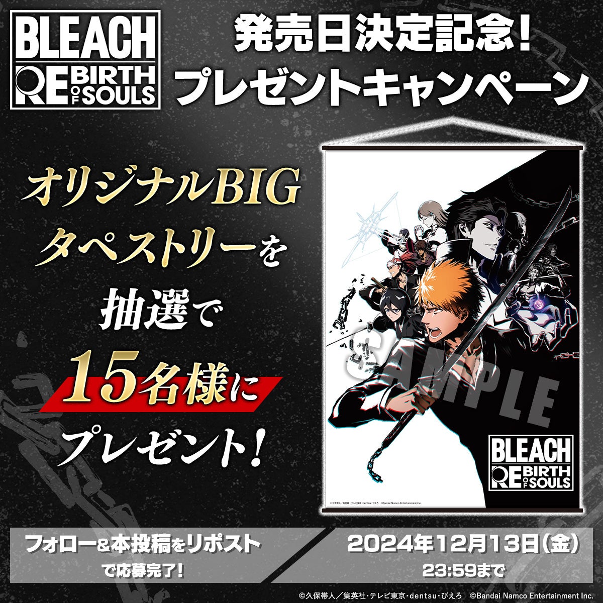本作の公式Xをフォロー&該当の投稿をリポストすると抽選で15名様に新規キービジュアルを使用したオリジナルBIGタペストリーが当たるキャンペーンを実施中!