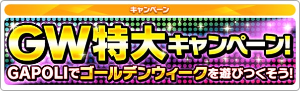 ゴールデンウイーク(4月28日~5月7日)はお得なキャンペーン盛りだくさん!GAPOLIでゴールデンウイークを遊びつくそう!