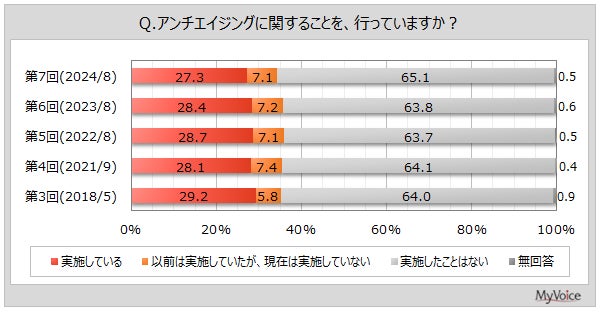 マイボイスコム株式会社(東京都千代田区、代表取締役社長:高井和久)は、7回目となる『アンチエイジング』に関するインターネット調査を2024年8月1日~7日に実施しました。