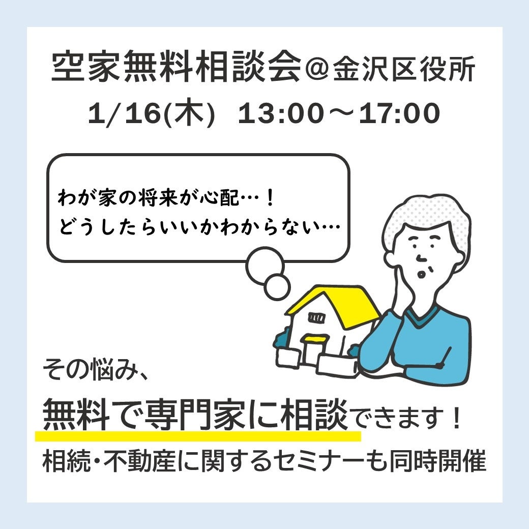 このたび空家無料相談会を金沢区役所で開催しますので、お気軽にご参加ください。