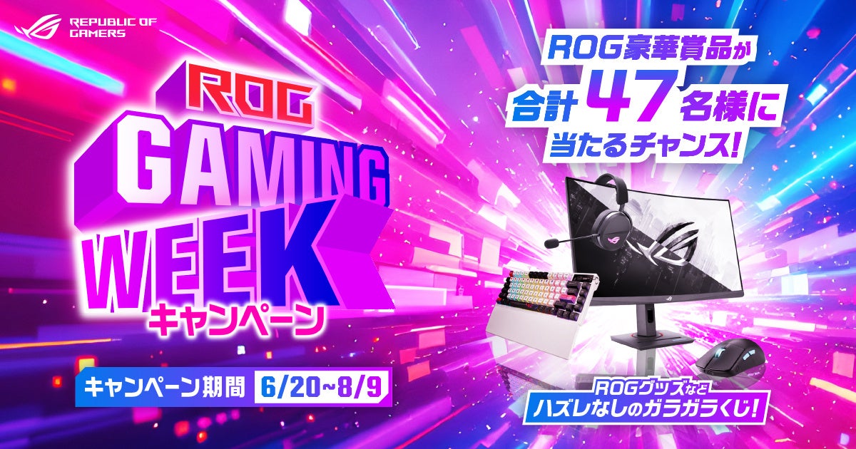 ASUS JAPAN株式会社は、2025年6月27日(金)ROG豪華賞品が当たる、「ROG GAMING WEEK 2025」の応募を開始しました。本キャンペーンでは、期間中にご応募いただいた方の中からガラガラくじ抽選で計47名様に、「ROG STRIX XG27WCMS」ゲーミングモニターをはじめとする豪華賞品をプレゼントいたします。さらに、ゲームコードや希少ROGグッズ、QUOカードPayも賞品としてご用意。 ハズレなしのガラガラくじ期間限定キャンペーンにぜひご応募ください。