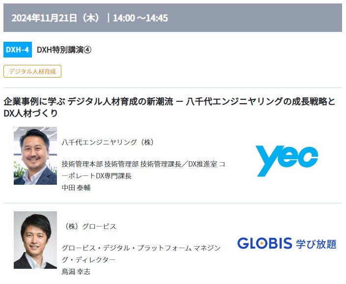 全社を挙げてデジタル人材育成に取り組んでいる八千代エンジニヤリングをゲストに迎え、具体的な取り組みと実践的施策について解説する。