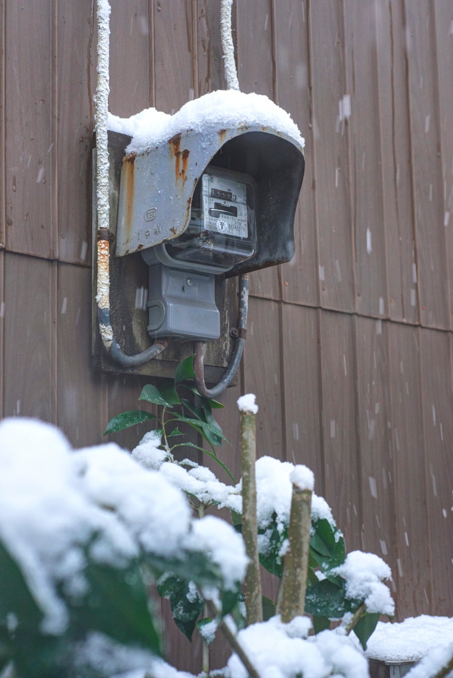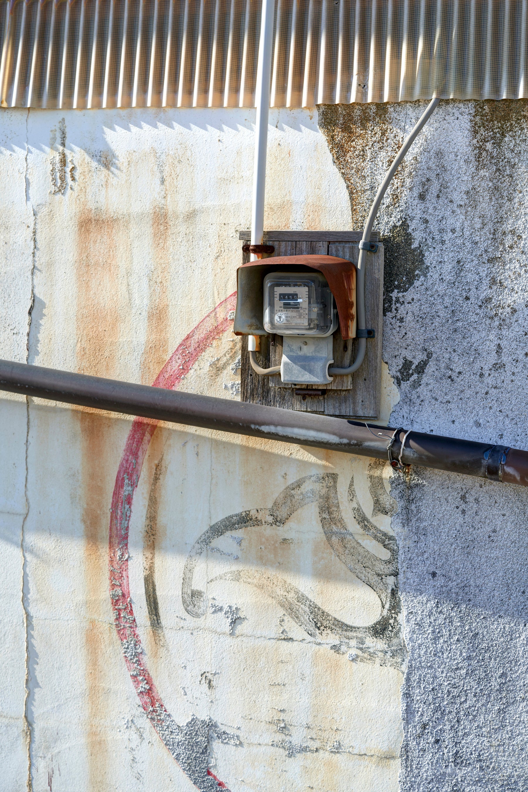 電力量計と取り付けられている 家屋には不思議と調和が見られます。明るく綺麗な家もあれば廃屋に近い家もありました。材質も板張、トタン、モルタルとさまざまです。そしてそこに機械式電力量計があることによって完結する景色があることに気づかされました。