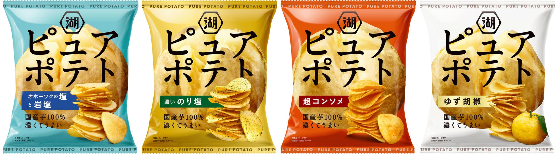 株式会社湖池屋(社長:佐藤章)は、2018年の発売以来、唯一無二の厚切りポテトチップスとして高い人気を誇る「ピュアポテト」ブランドをフルリニューアルし、新ラインアップとして「オホーツクの塩と岩塩」「濃いのり塩」「超コンソメ」「ゆず胡椒」の4品を、2025年8月18日(月)に全国のコンビニエンスストア先行、2025年8月25日(月)に全国のスーパーマーケット他一般チャネルで発売します。