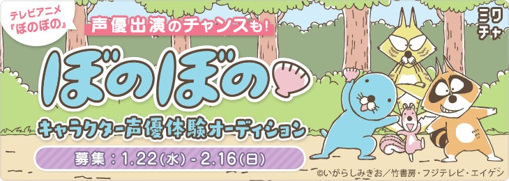 人気TVアニメ『ぼのぼの』に出演できる!?キャラクター声優体験オーディションをライブ配信&動画アプリ「ミクチャ」で開催!