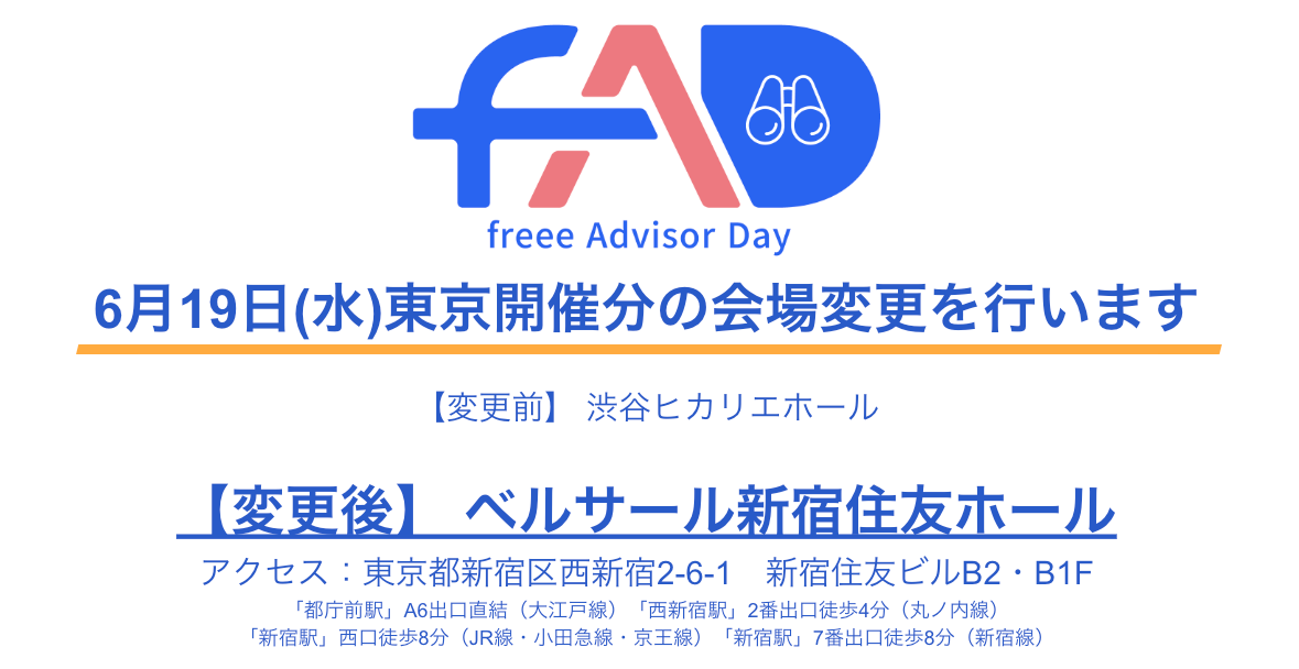 6月19日開催「freee Advisor Day2024」東京開催分の会場変更のお知らせ