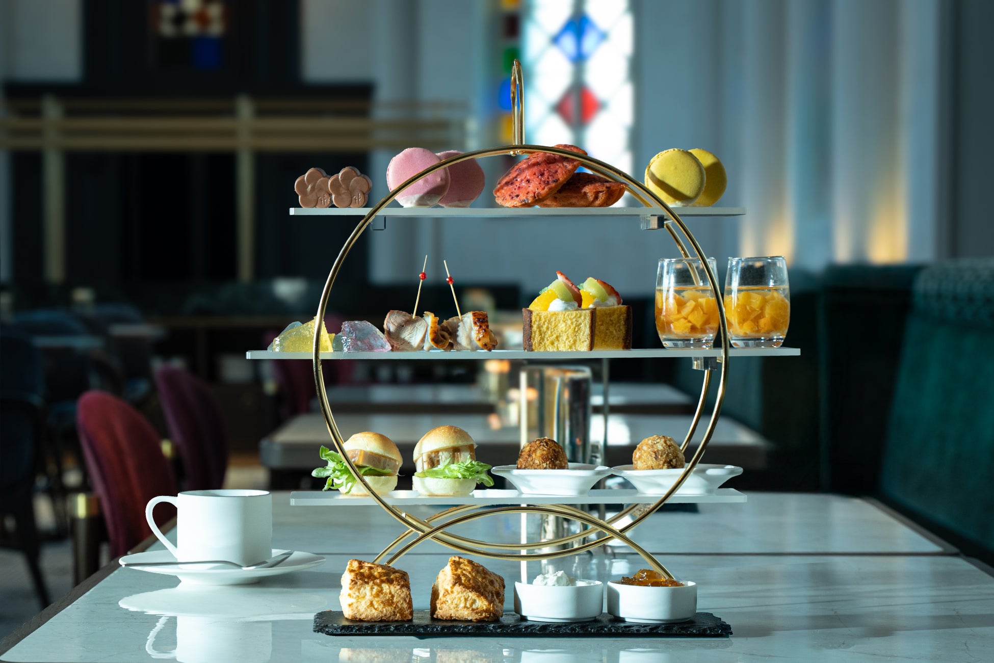 “シュガーロード“をテーマに長崎の食材とスイーツを活かした当ホテル開業後初めてとなるアフタヌーンティーです。地元の街づくりプロジェクト「My SWEET NAGASAKi」を牽引する「ピエール・エルメ・パリ」のマカロンやショコラを含むスイーツ7種とカステラのフルーツサンドや長崎煮のスライダーバーガーなどセイボリー4種が並びます。お飲み物には長崎県産のほうじ茶やホテルオリジナルブレンドの枇杷茶などをラインナップいたします。色とりどりのステンドグラスが煌めく聖堂レストランで特別な午後のひとときをお過ごしください。