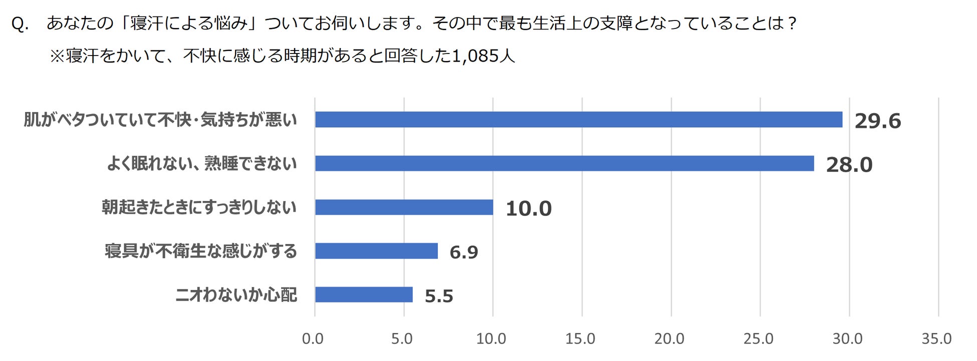 梅雨時期から夏にかけて、約45%の人が感じる「寝汗」の不快感 「肌がベタつく」などの悩みも