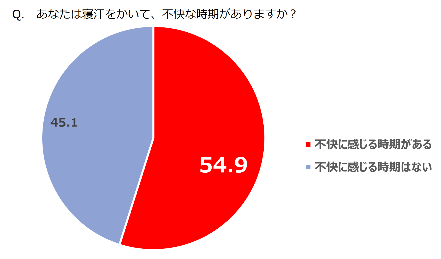 約半数(54.9%)が「寝汗をかいて不快な時期がある」と回答