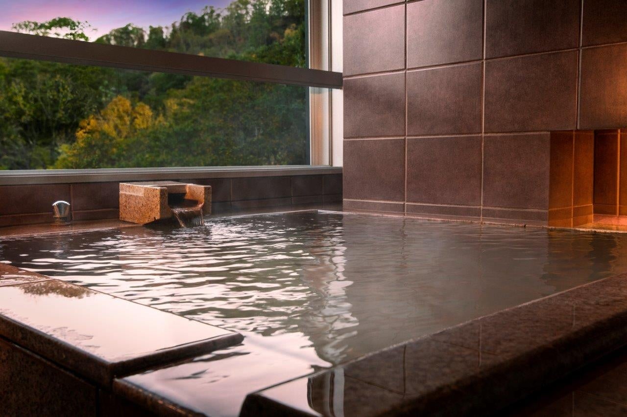 登別の白濁した温泉を独り占めできる全室展望風呂温泉付きです。