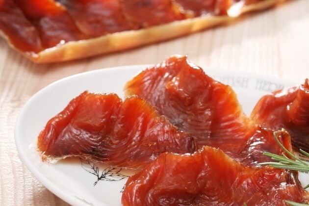 ロッキー山脈を思わせる鮭の半身を使ったダイナミックな燻製!