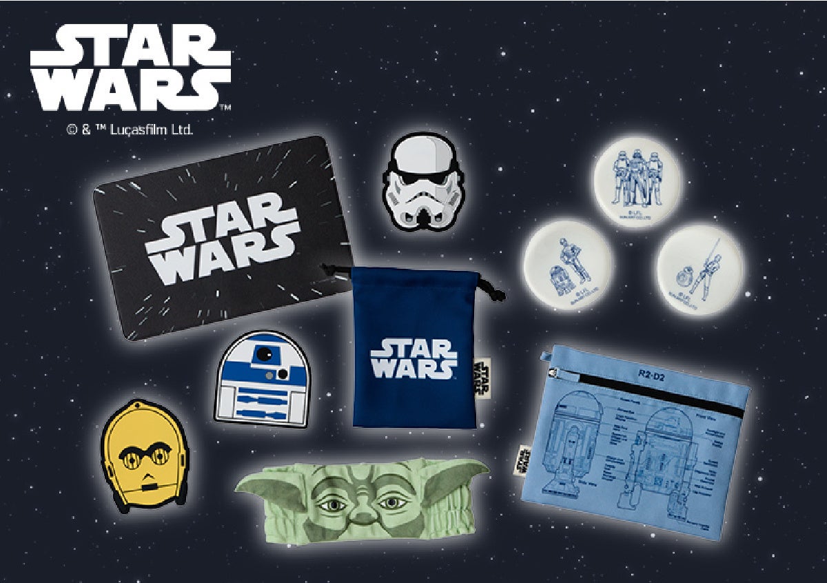 毎日使いたくなるヨーダやチューバッカのヘアバンドをはじめ、ポーチや巾着、タオルなど、身近に使いやすいアイテムが揃っています。
