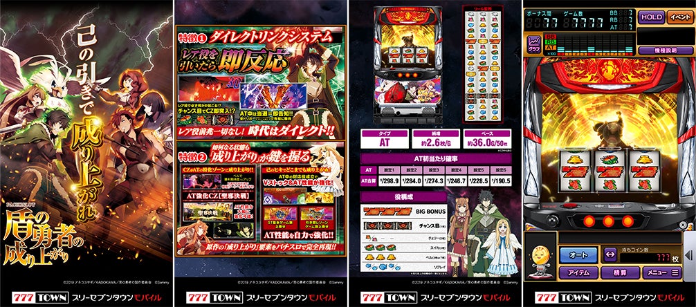 「パチスロ盾の勇者の成り上がり」がぱちんこ・パチスロゲーム「777TOWN mobile」に登場!