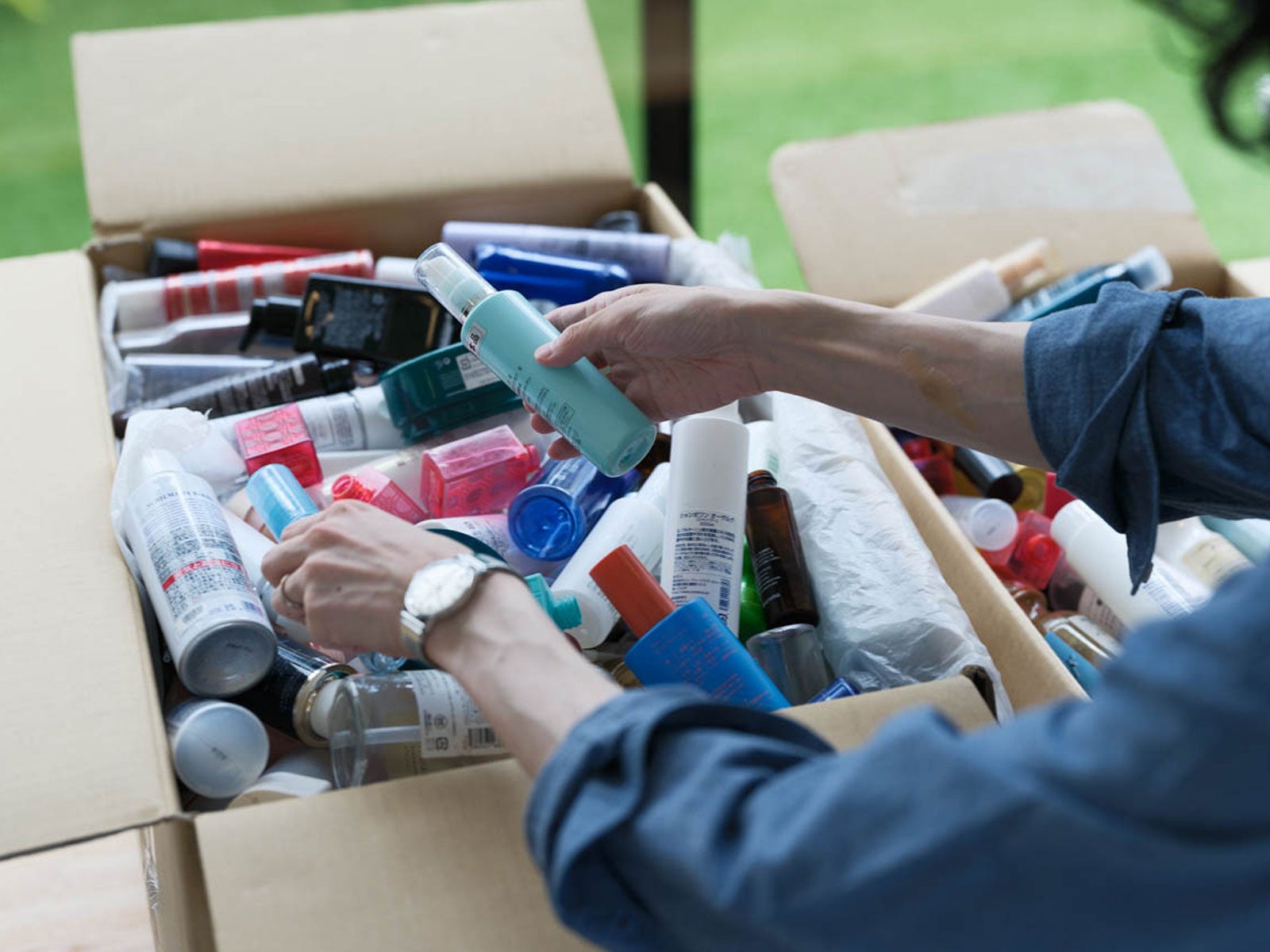 化粧品空容器を回収し、髙島屋のバイヤーが自ら色や種類を選別・洗浄。容器その後、「ParallelPlastics」の再生プロセス(粉砕・成型)でアップサイクルしました。