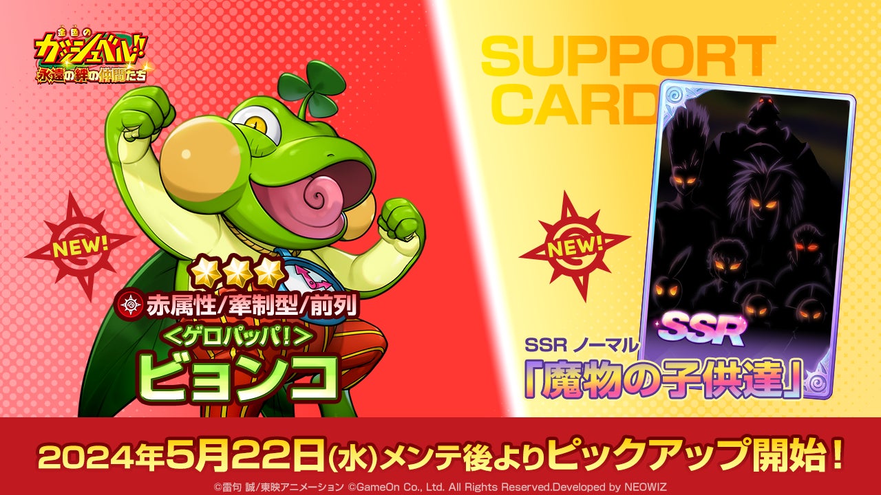 なお、2024年6月5日(水)11時まで、新キャラ「<ゲロパッパ!>ビョンコ」、既存キャラ「<好奇心旺盛>キッド」、新サポートカードSSR「魔物の子供達」がピックアップ対象となります。