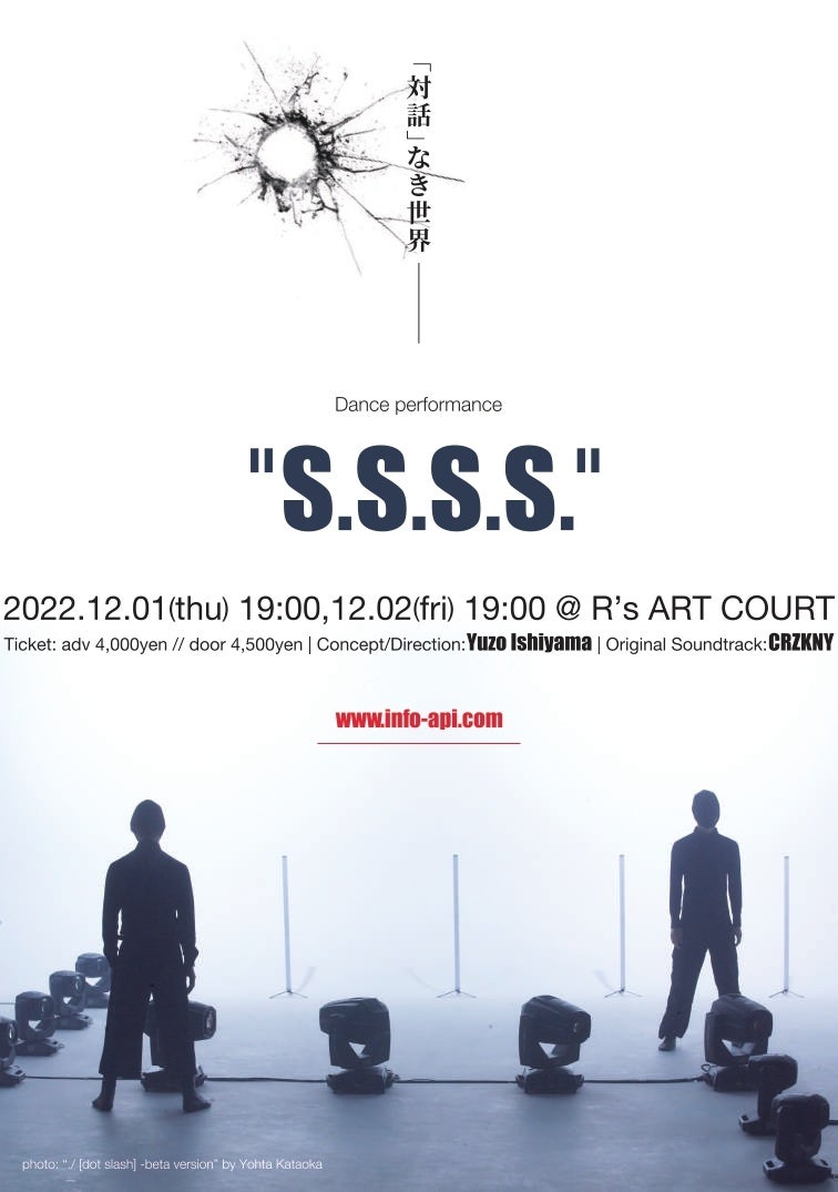 アーティスト・コレクティブ "A.P.I." は、2022 年 12 月、パフォーマンス・メディア・アーティスト/振付家・ 石山雄三の新作ダンス・パフォーマンス『S.S.S.S.』を、「R's アートコート」(新大久保)で発表する。