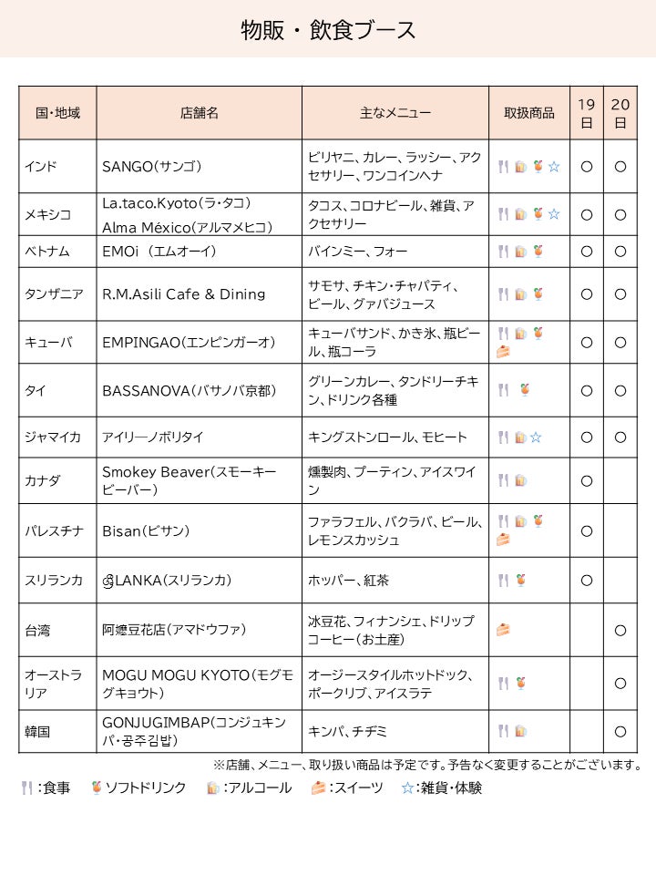 世界各地の音楽を聴くことが出来るライブや、国際色豊かな世界のグルメ・物販のブース など、異国の香りと彩りに包まれる特別なひととき。まるで旅をするように、世界を歩くように、京都駅で“世界体験”をお楽しみください!