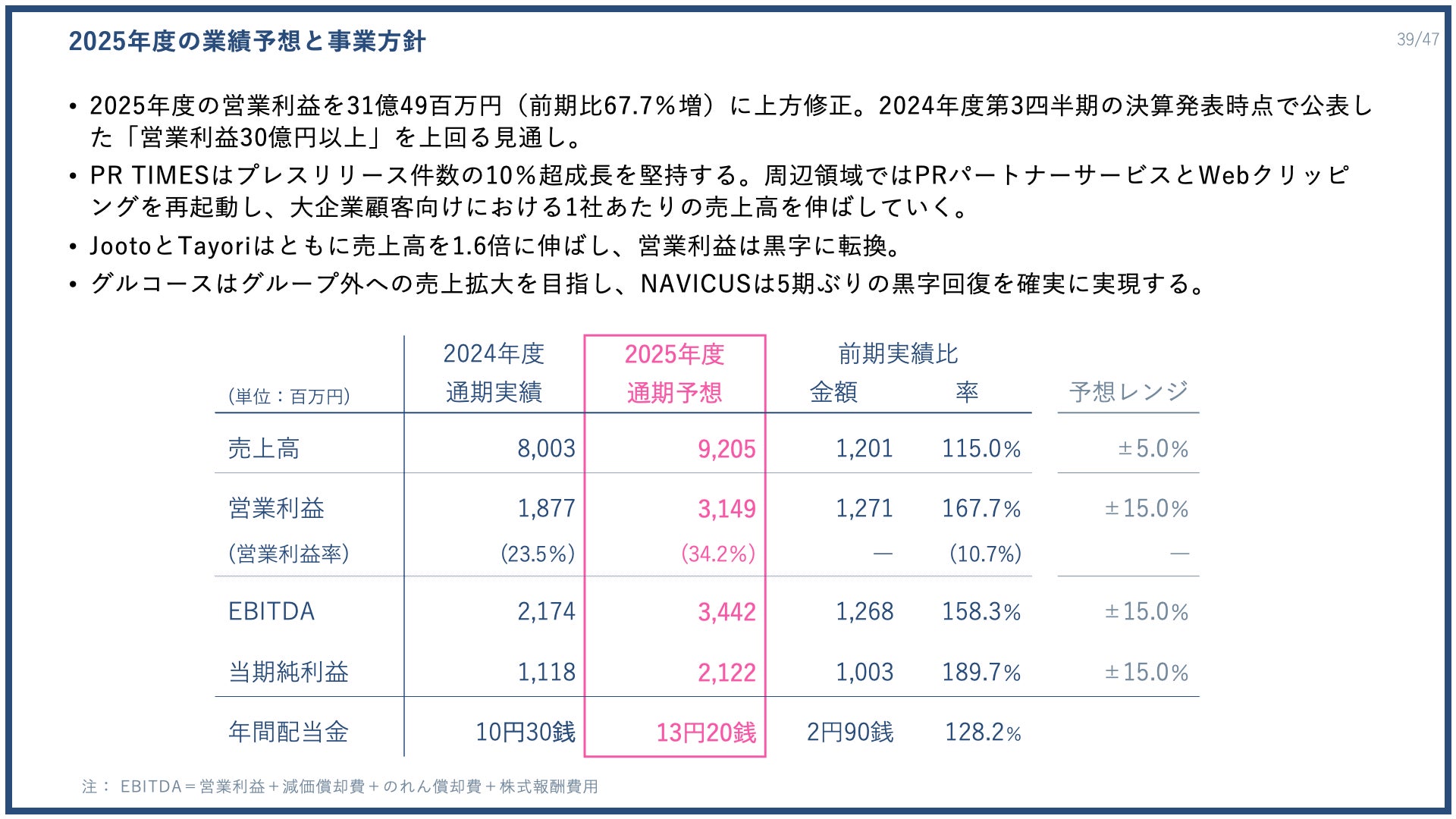 2025年度業績予想では、営業利益31億4900万円に上方修正