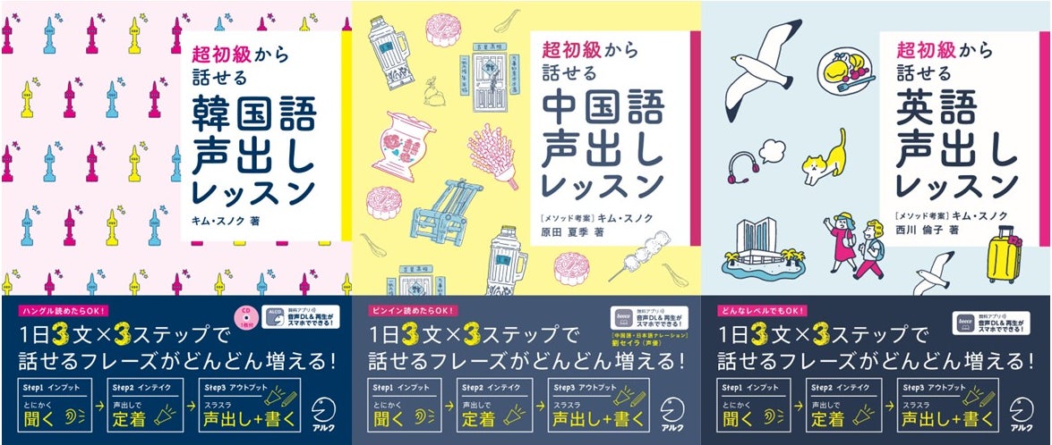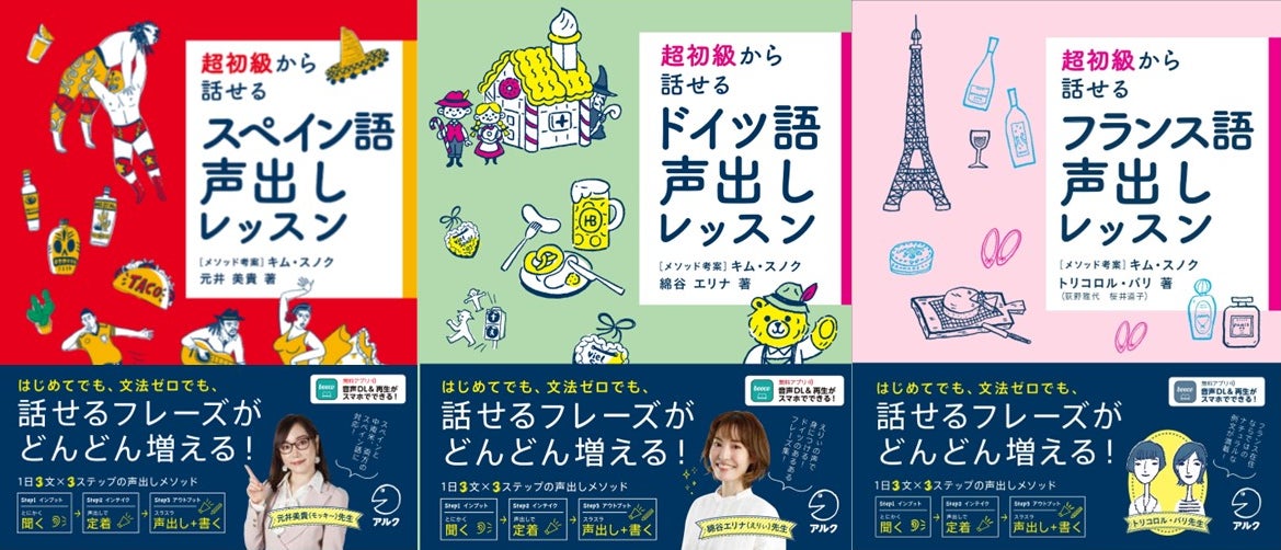 はじめてでも、文法ゼロでも、話せるフレーズがどんどん増える! 人気の声出しレッスンシリーズの「スペイン語」「ドイツ語」「フランス語」を11月21日(月)に3冊同時発売。Amazonにて予約受付中!
