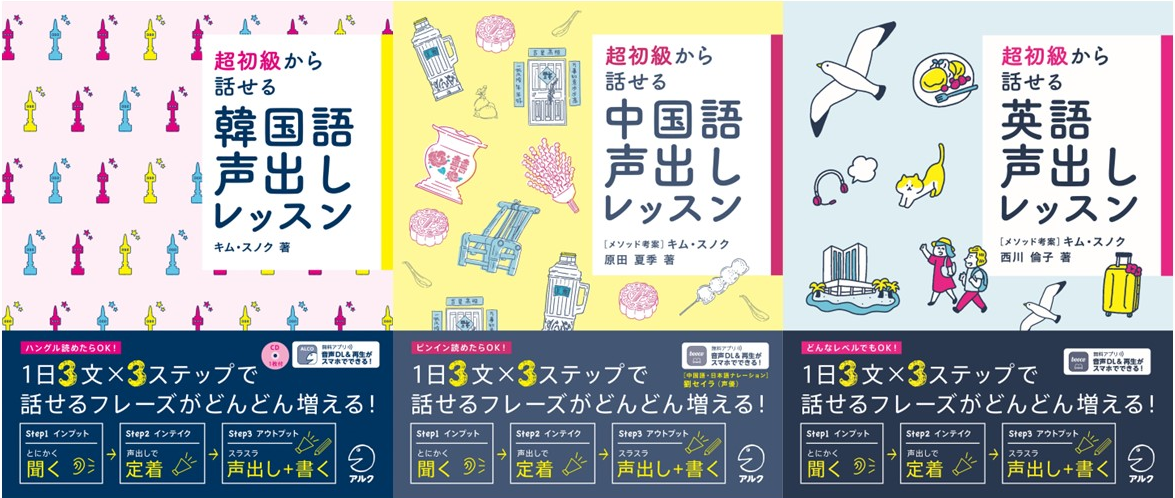 ●声出しレッスン「韓国語」「中国語」「英語」は大好評発売中! 効果実感の声、続々と届いています。