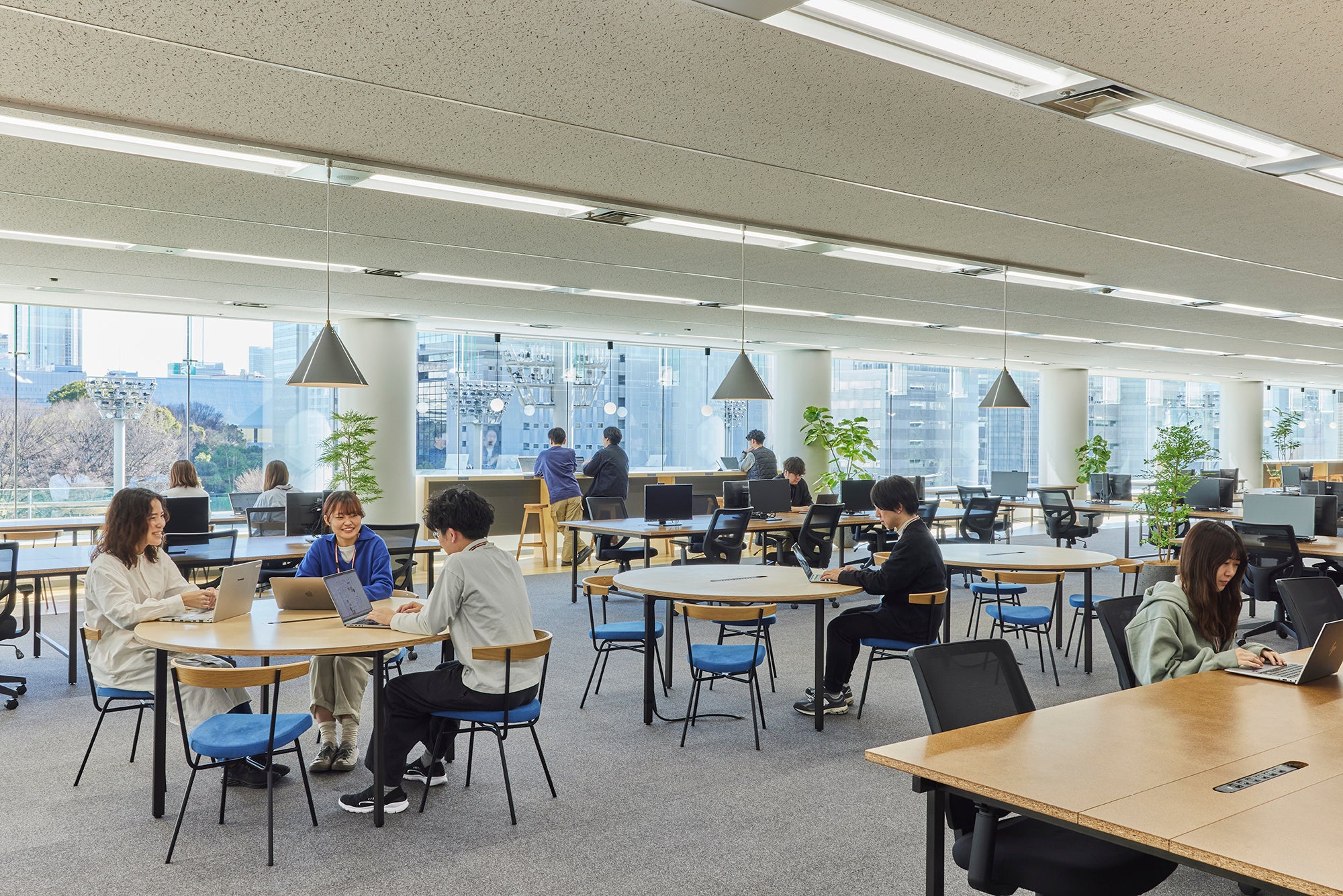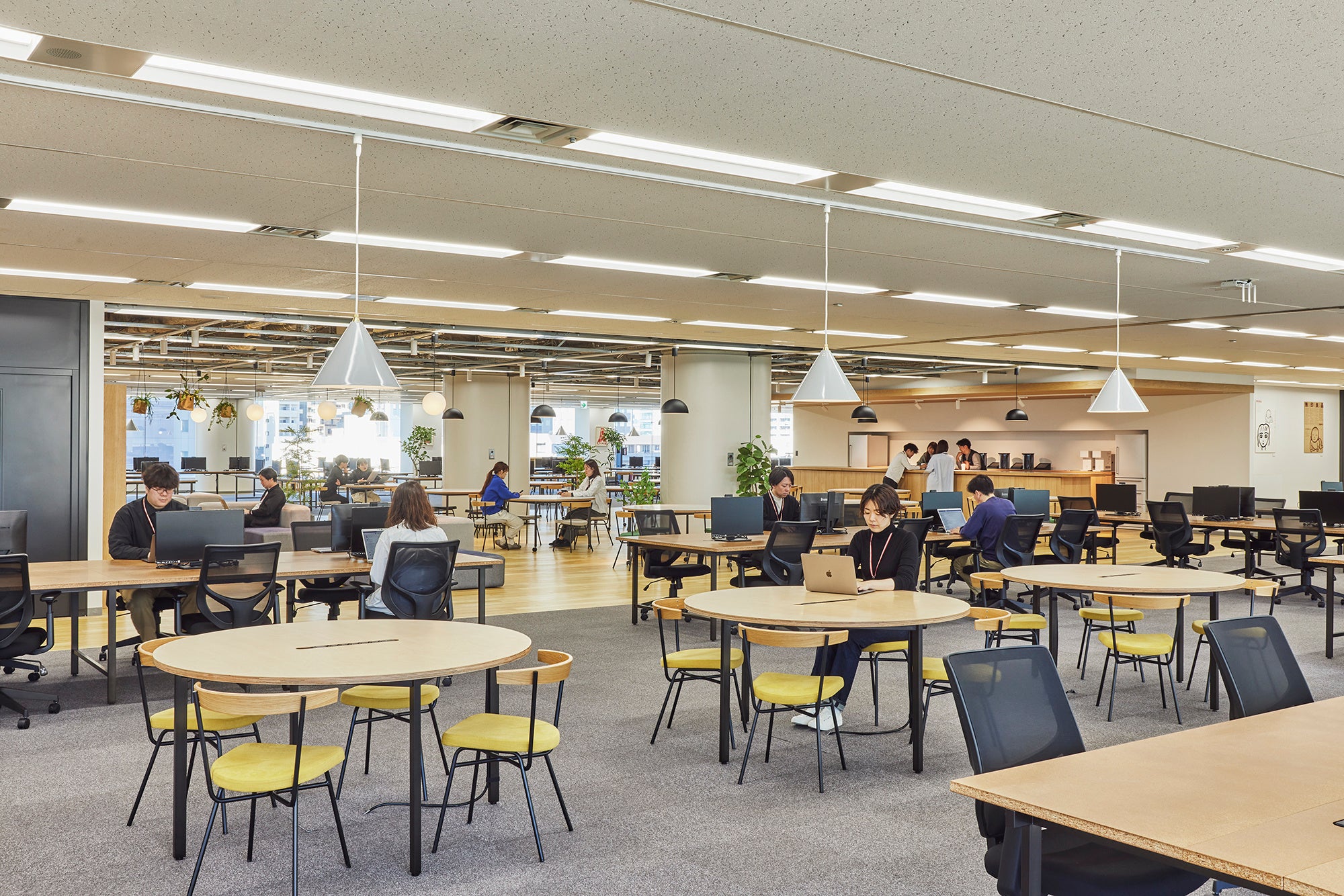 ・テレワークとオフィス出社の併用から、全社員の約7割出社を想定し、席数や一人当たりの床面積も増加しました。