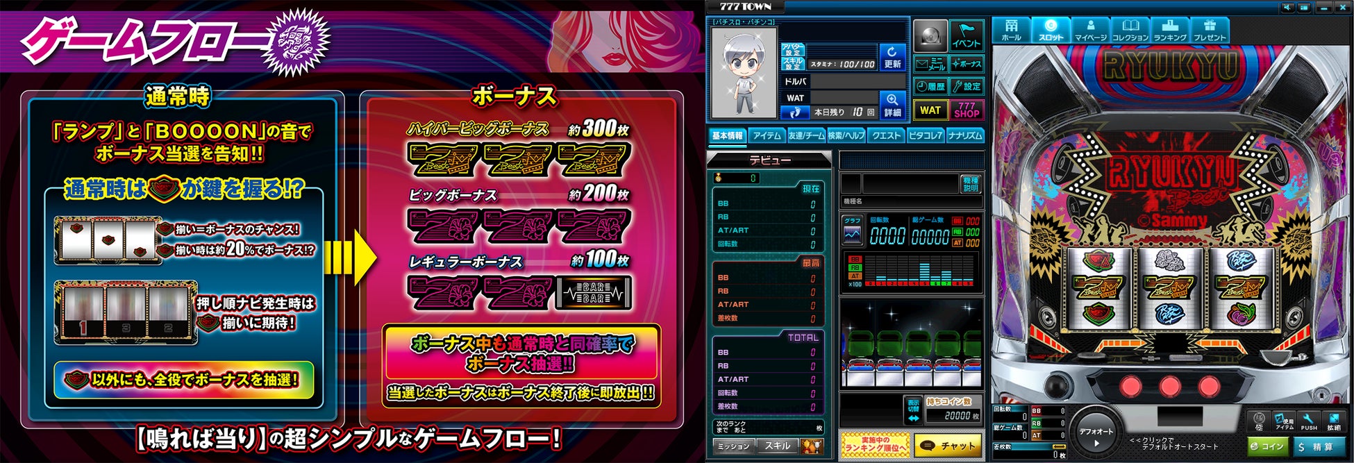「パチスロRYUKYU BEAT-30」がぱちんこ・パチスロオンラインゲーム「777TOWN.net」に登場!