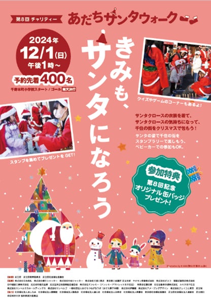 ―足立区の子どもたちの夢を応援―12月1日(日)「第8回チャリティー あだちサンタウォーク」を開催 参加費は支援が必要な子どもたちのクリスマスプレゼントに