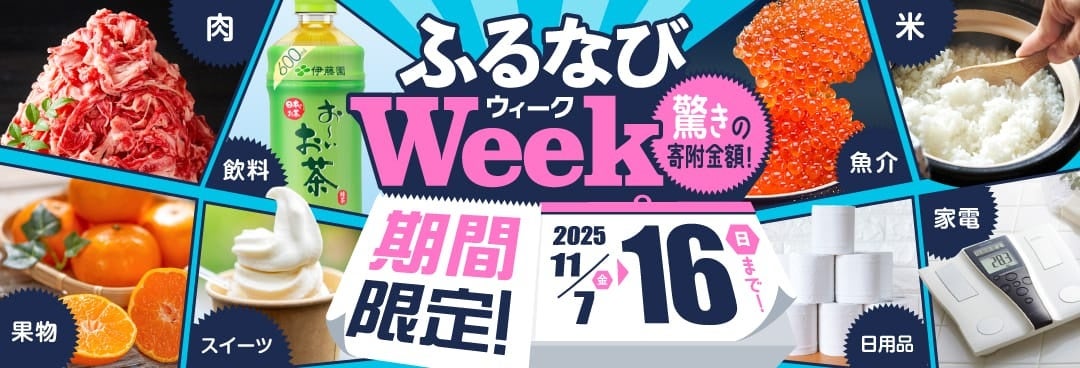 ふるさと納税サイト「ふるなび」が、11月16日(日)までの期間限定で「ふるなびWEEK」を開始!驚きの寄附金額返礼品を多数掲載!