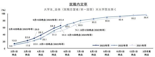 就職内定率は65.4%で、引き続き高い水準で推移。
