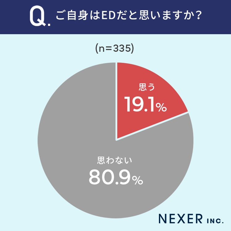 20代~60代の男性に調査したところ19.1%が、自身がEDだと「思う」と回答しています。