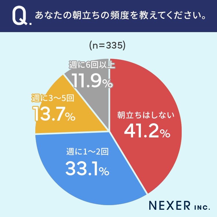 「朝立ちはしない」が41.2%、「週に1~2回」が33.1%という結果になりました。