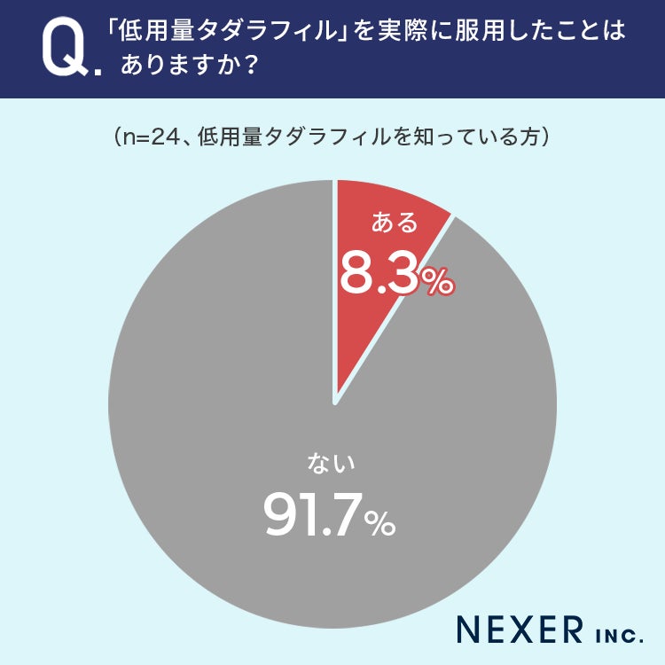 8.3%の方が、「低用量タダラフィル」を実際に服用したことが「ある」と回答しています。