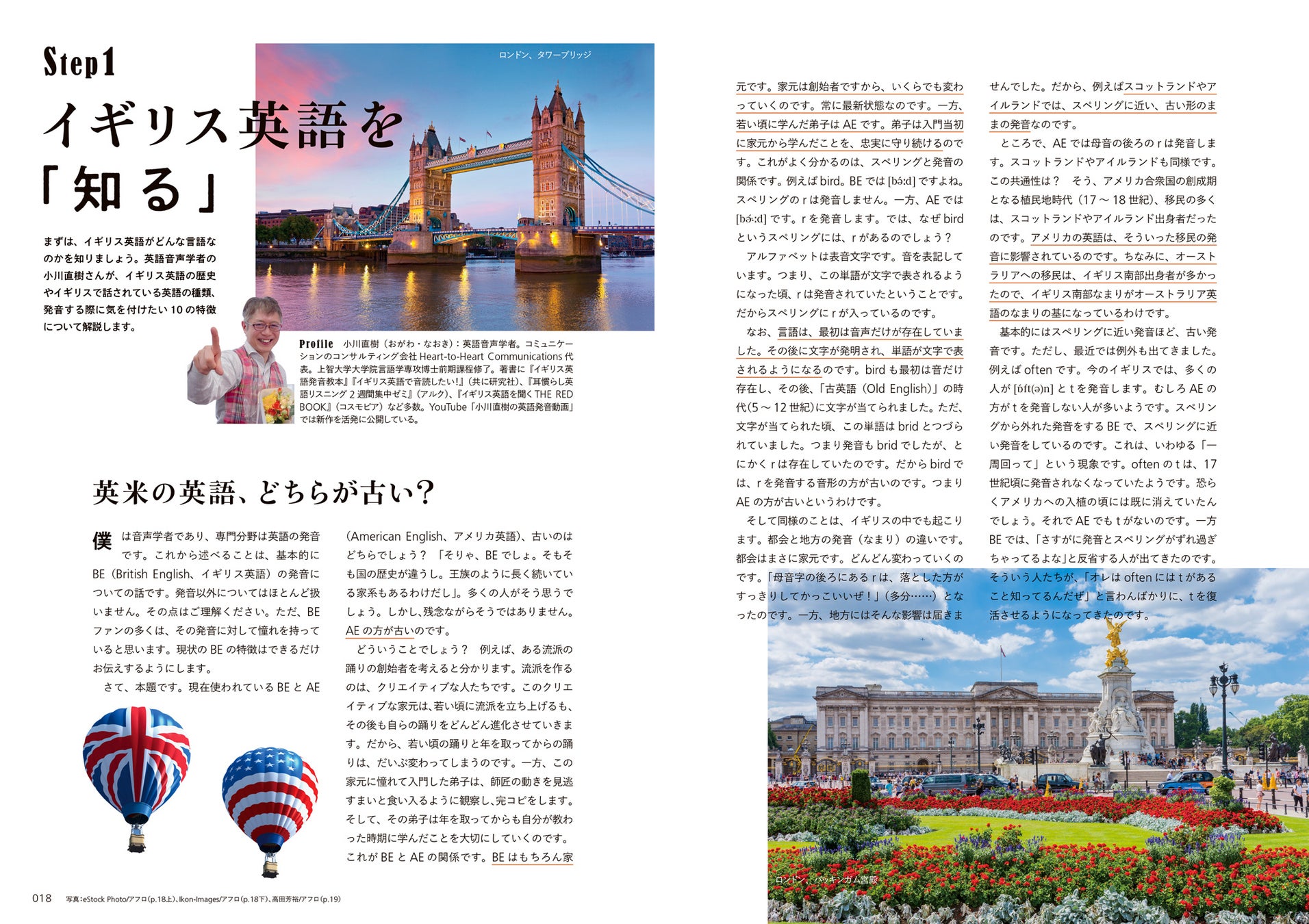 英語学習を続けるうちに、知的で洗練された響きの「イギリス英語」に憧れを抱く人は多いのではないでしょうか。一方で、アメリカ英語とは異なるアクセントの聞き取りに苦手意識を持つ人もいるでしょう。本企画では、「知る」「聞く」「話す」の3ステップでイギリス英語の習得を目指します。聞き取りのこつや発音の特徴を知った上で、イギリス人のインタビューで耳を鍛え、最後はシャドーイング用音声を使って発音練習をしましょう。イギリス英語とアメリカ英語で異なる単語100個も、音声付きで紹介します!