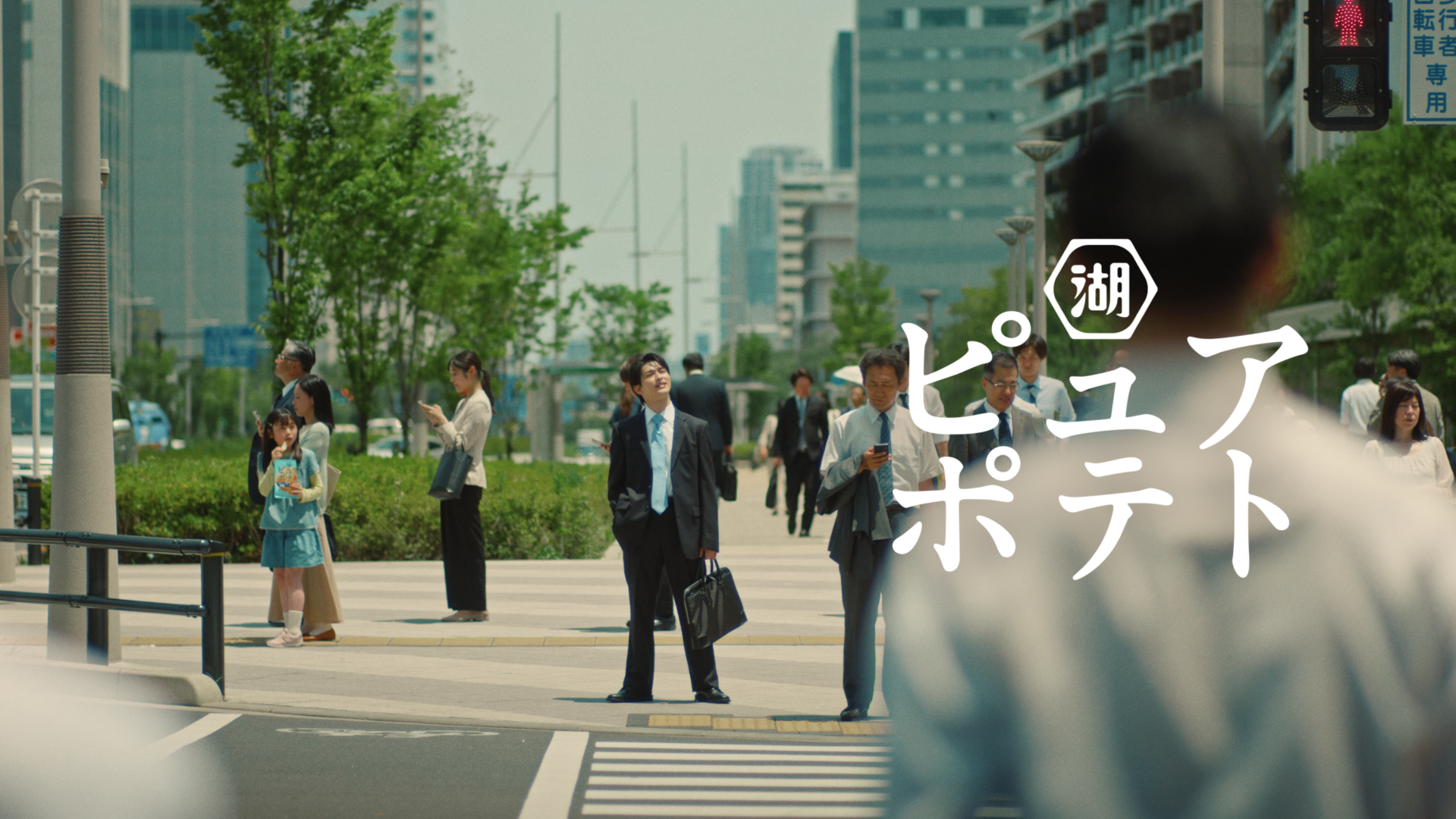 街の交差点で信号待ちをするサラリーマン姿の横浜流星さん。ふと、近くにいた少女が「ピュアポテト」を「サクッ」と食べる音が聞こえます。その音とふわっと香る匂いに刺激され、横浜さんの時間が止まったかのように表情が一変。次の瞬間、衝動を抑えきれず、まるで何かに取り憑かれたかのように猛然と走り出します。橋を渡り、雑踏を駆け抜け、ただひたすらに走り続けます。息を切らしながらたどり着いたのは一軒のスーパー。店内で「ピュアポテト」を見つけ、安堵と喜びの表情で手に取ります。ラストシーンでは、橋の欄干にもたれ、手に入れたばかりの「ピュアポテト」を至福の表情で頬張る横浜さんの様子を映し、CMを締めくくります。