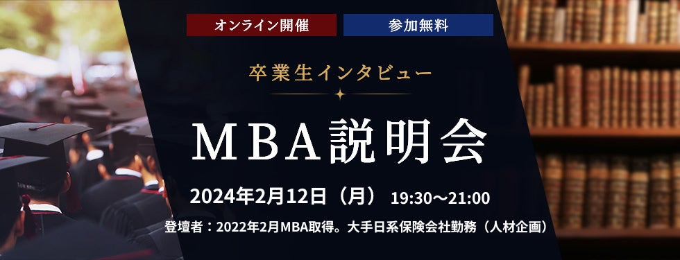 人生100年時代を迎え、キャリアにおける「マルチステージの人生」と「幅広い選択肢」が浸透しています。同時に、テクノロジーの進化により企業活動の可能性や自由度が激変し、組織の力を最大限に生かすマネジメント力やコラボレーション力、経営スキルも重要視されています。この背景から、MBAの学習ニーズが高まり、文部科学省が発表する系統別在籍者数から推定すると、日本では年間約2,500人がMBAを取得しています。この度、当社では、MBAをお考えの方あるいはスキルアップを目指す方を対象に、リアルな声を聴ける場として、本イベントを開催いたします。