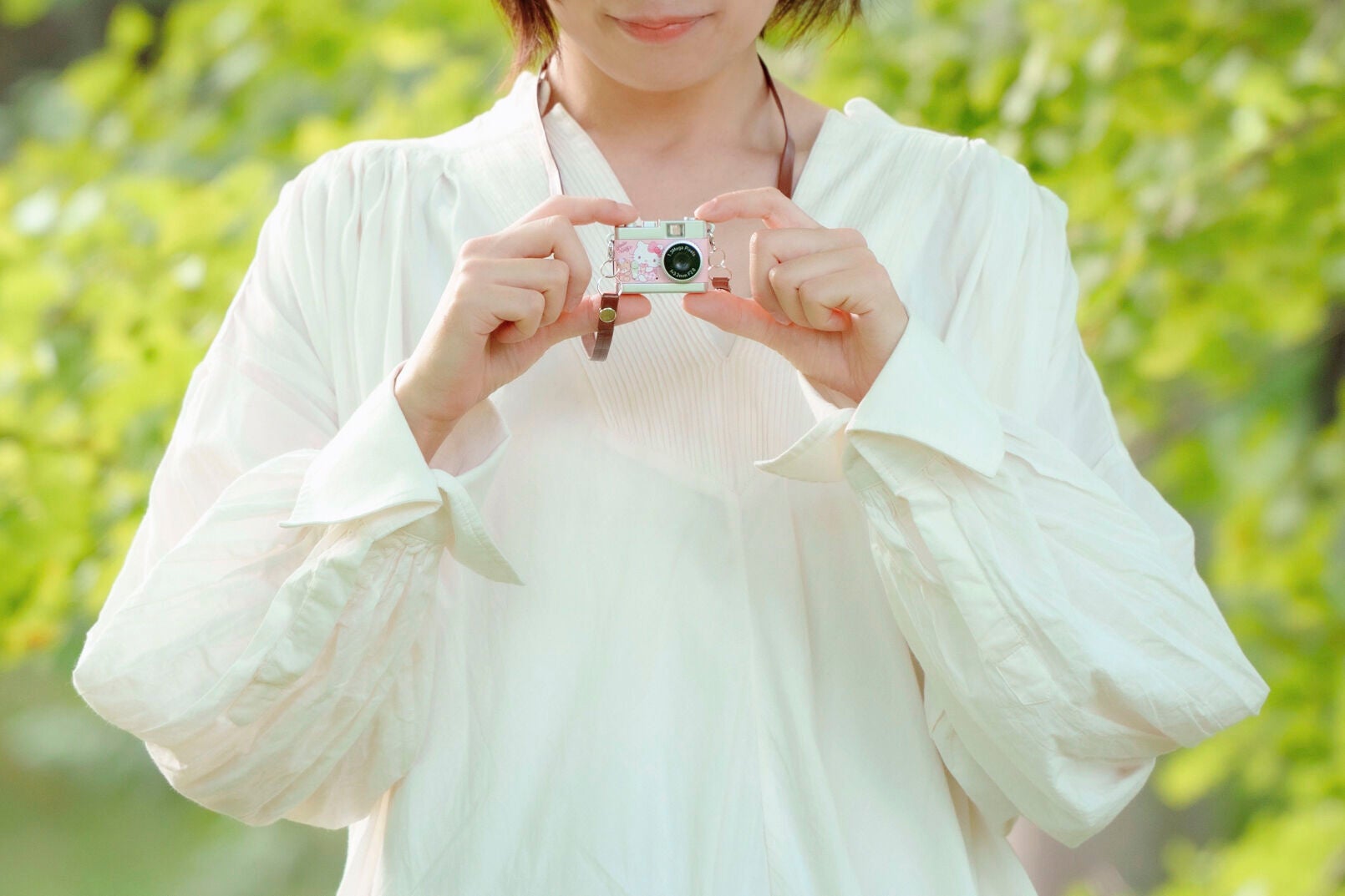 人気のサンリオキャラクターがあしらわれた超小型デジタルトイカメラに、スイーツをテーマにした新シリーズが登場します。クラシックカメラをモチーフにしたかわいらしいデザインで、思わず持ち歩きたくなるコンパクトサイズ。携帯に便利なネックストラップも付属します。