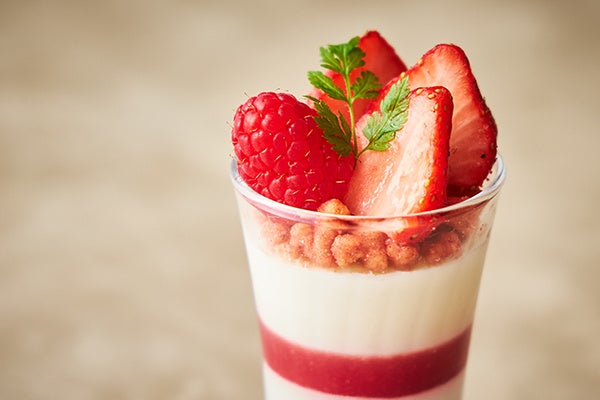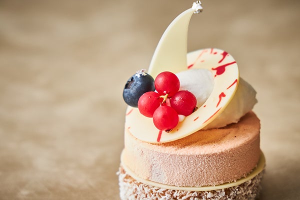 12月は、木苺クーリとフロマージュブランムースを交互に重ね、苺クッキーとフレッシュな苺で仕上げた“フロマージュブランと木苺のヴェリーヌ”、ピスタチオクリーム入りのタルト生地の上にミックスベリームースと苺ゼリーをのせ、風味豊かなピスタチオクリームをミニサイズのツリーのように絞った“ピスタチオモンブラン”、ココナッツビスキーにルビーチョコレートムースとライチゼリーを重ね、トップにフレッシュクリームのシャンティとフルーツを飾った“ルビーチョコレートのガトー”の3種をご用意いたします。ロビー中央に飾られる高さ約4.5mのクリスマスツリーを眺めながら、期間限定のデザートをぜひお楽しみください。