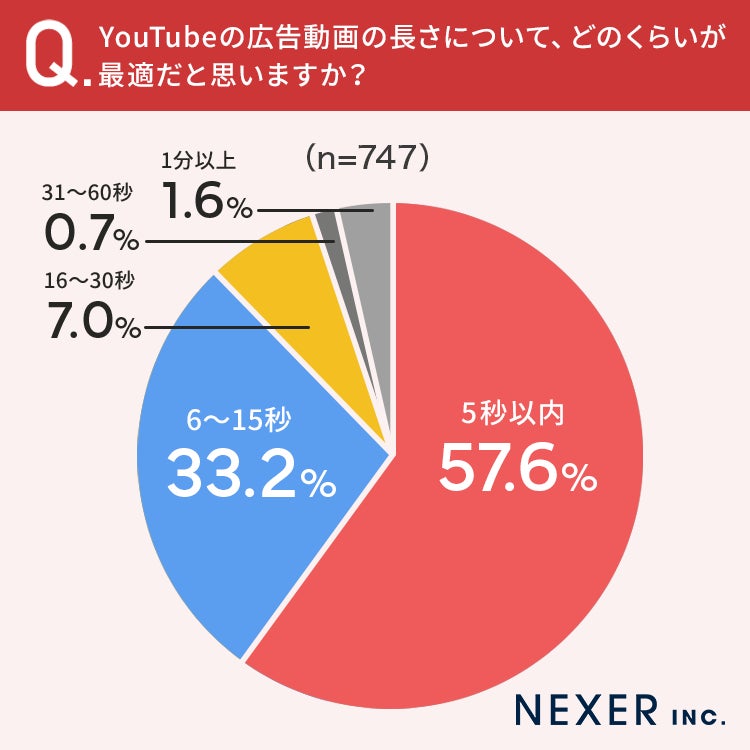 ■YouTubeの広告動画の長さ、57.6%が「5秒以内」と回答