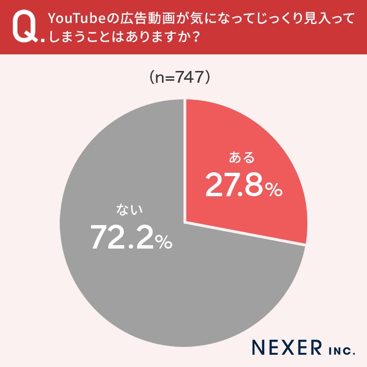 【YouTube利用者に調査】27.8%が、YouTubeの広告動画が気になってじっくり見入ってしまうことが「ある」