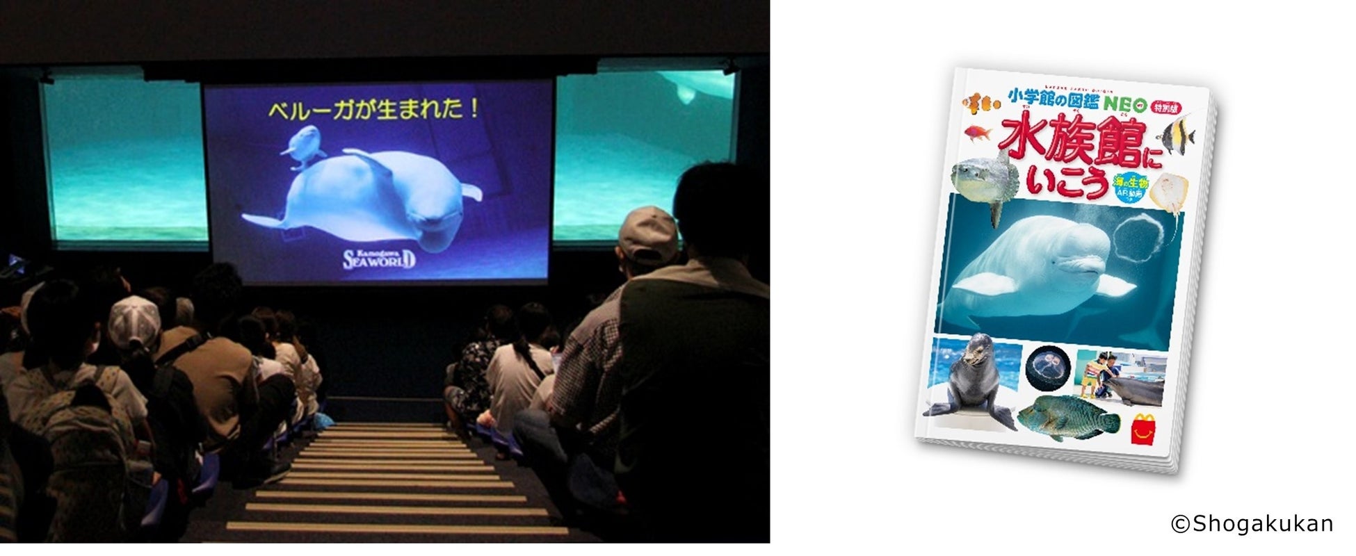 「水族館にいこう 海の生物クイズつき」は、日本マクドナルド株式会社が販売しているハッピーセットに2024年8月30日から期間限定で登場しているミニ図鑑です(10月17日(木)販売終了予定)。小学館の図鑑NEOシリーズから「魚」「動物」「水の生物」「鳥」をハッピーセット用に特別編集され、当館協力のもと、シャチやベルーガ、アシカなど、海の生物の写真を撮り下ろしました。
