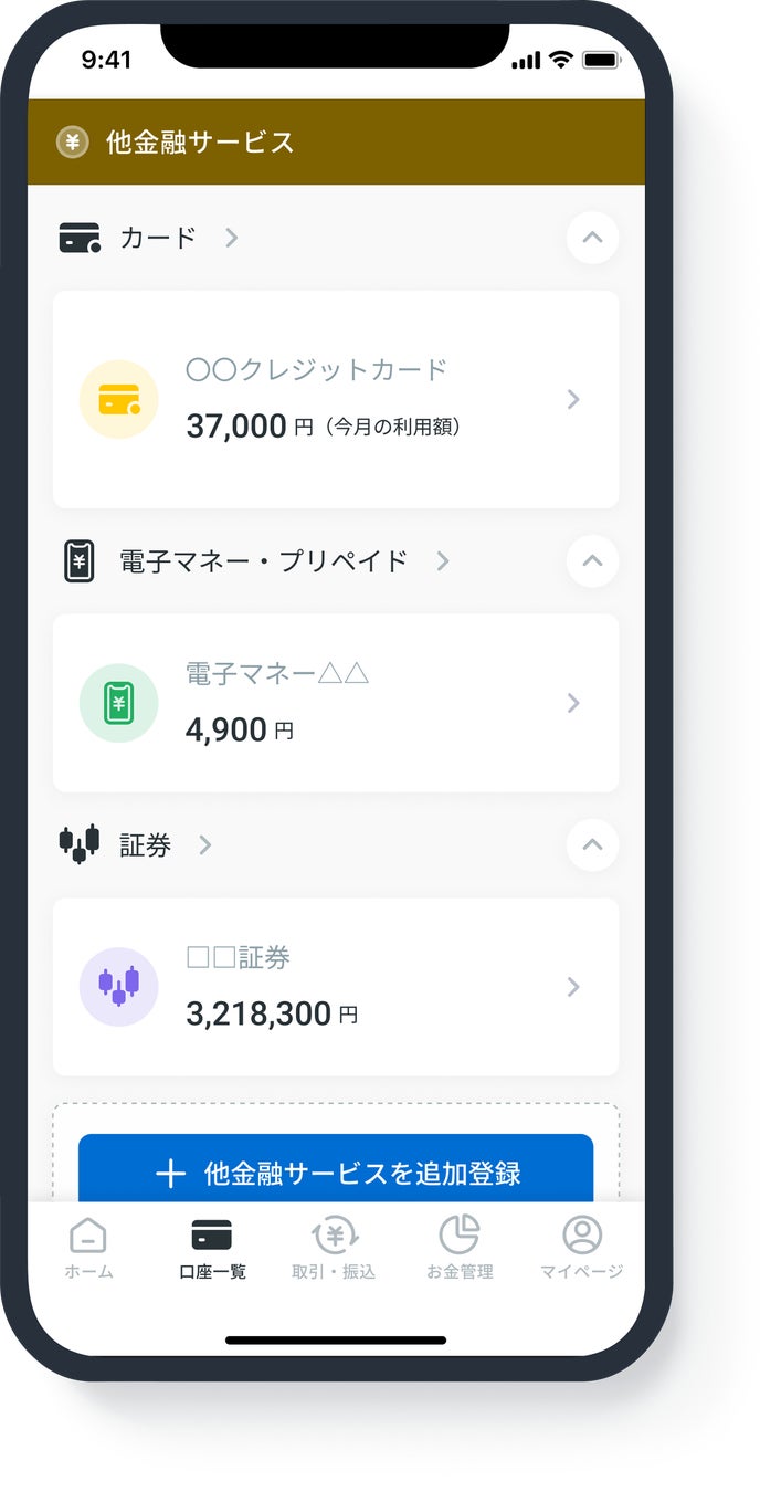 本機能は、ユーザーが保有する他行の銀行口座や証券口座、クレジットカードなど、複数の金融機関サービスをアプリに連携し、資産情報を一元管理できる機能です。これにより、金融機関はユーザーの利便性を高めるとともに、蓄積されたデータを活用してデジタルマーケティングを高度化し、収益機会の拡大を図ることができます。
