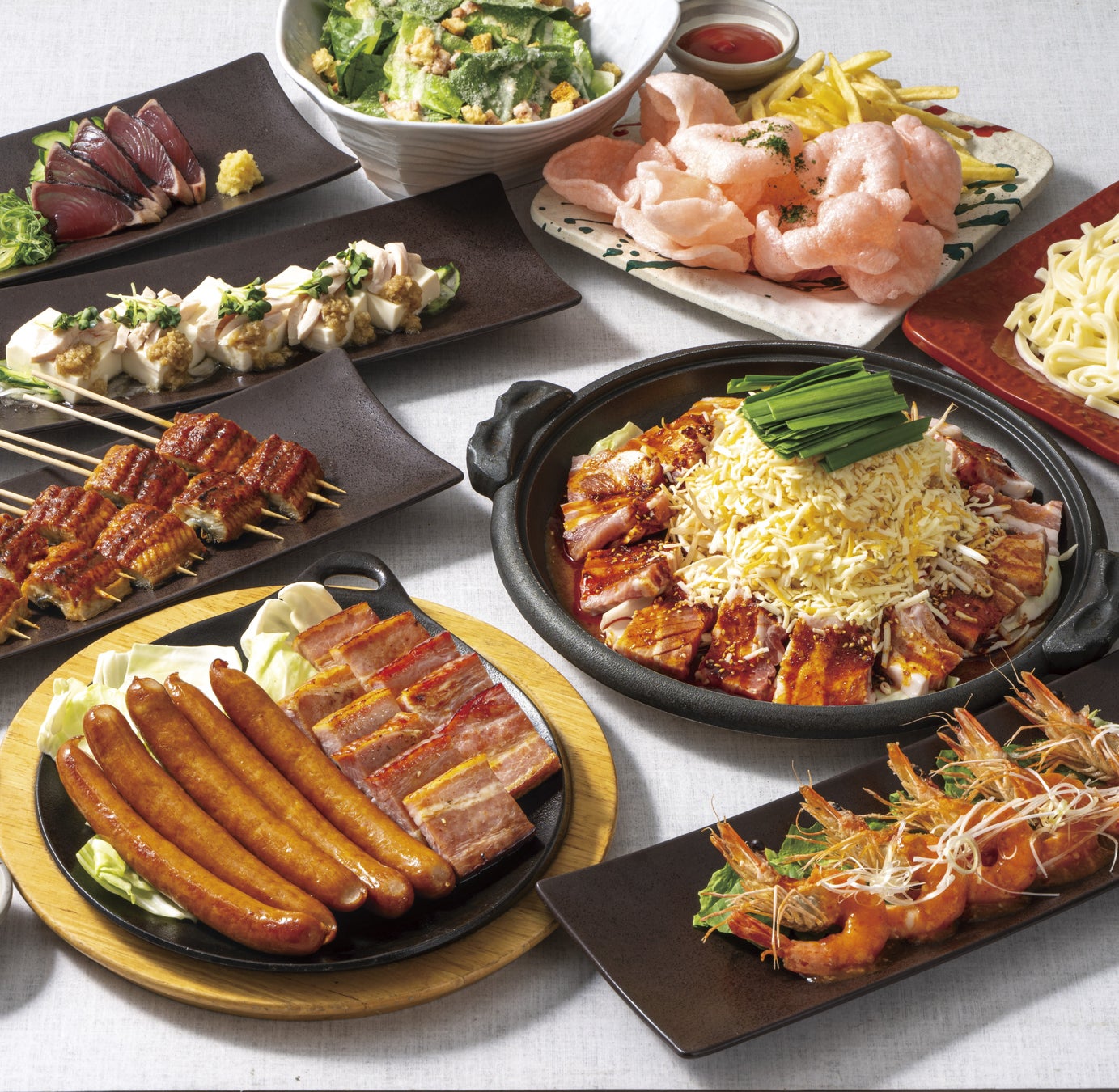 とろ〜りチーズが絡む「九州産三元豚とチーズのピリ辛陶板」や「厚切りベーコン&ウインナー」、さらにうなぎ串まで楽しめる、ボリュームと満足度抜群のコースです。さらに、早得特典として「3日前までのご予約」で陶板のお肉が“倍盛り”に!夏の乾杯を盛り上げる強力な味方「夏宴会」で、仲間とガッツリ楽しみませんか?