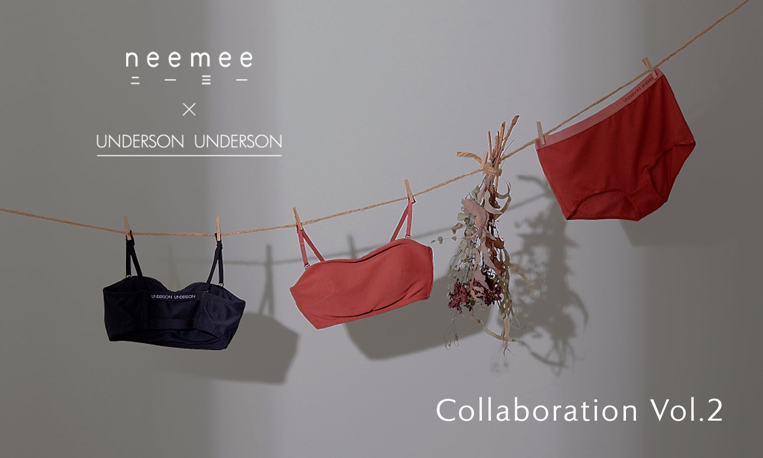 コラボレーション第二弾は、UNDERSON UNDERSONのシグ二チャーアイテムともいえる和紙のアンダーウェアに、nee mee ならではのファッション性と機能性を兼ね備えたデザインが融合したアンダーウェアのコラボレーションが実現。