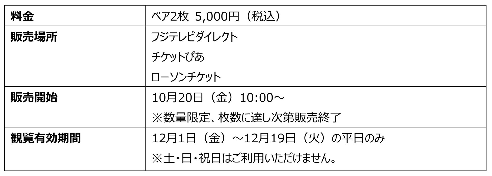 12月1日(金)~12月19日(火)の平日限定で使用できる、お得なペアチケットです。