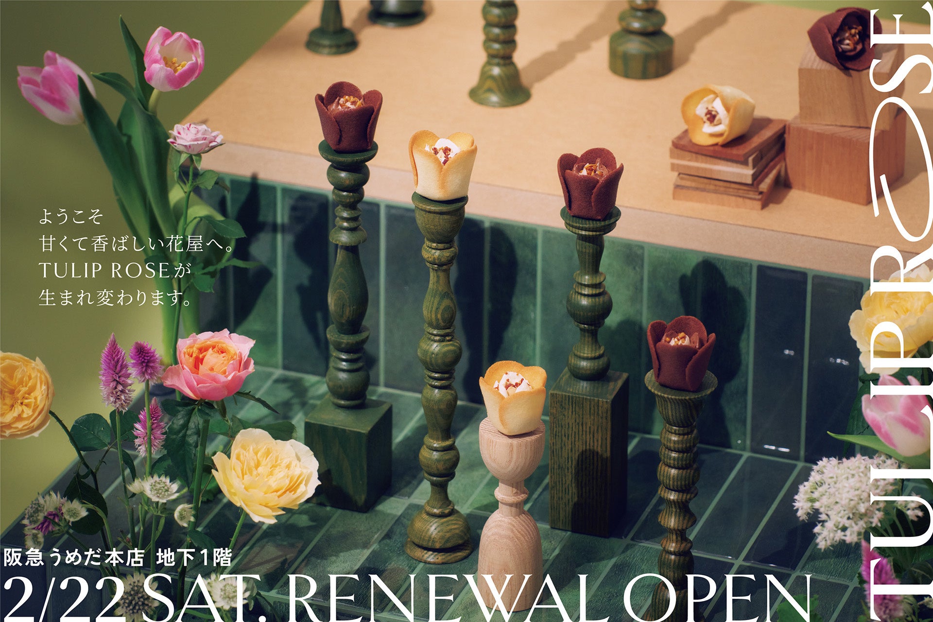 「ねんりん家」「東京ばな奈ワールド」などを運営する株式会社グレープストーン(本社:東京都中央区銀座)のスイーツブランド《TOKYO TULIP ROSE (TOKYOチューリップローズ)》が2月22日(土)阪急うめだ本店にリニューアルオープン。全品新レシピ・新デザインに生まれ変わるのに加え、ブランド初の極厚バターサンドも新登場します。