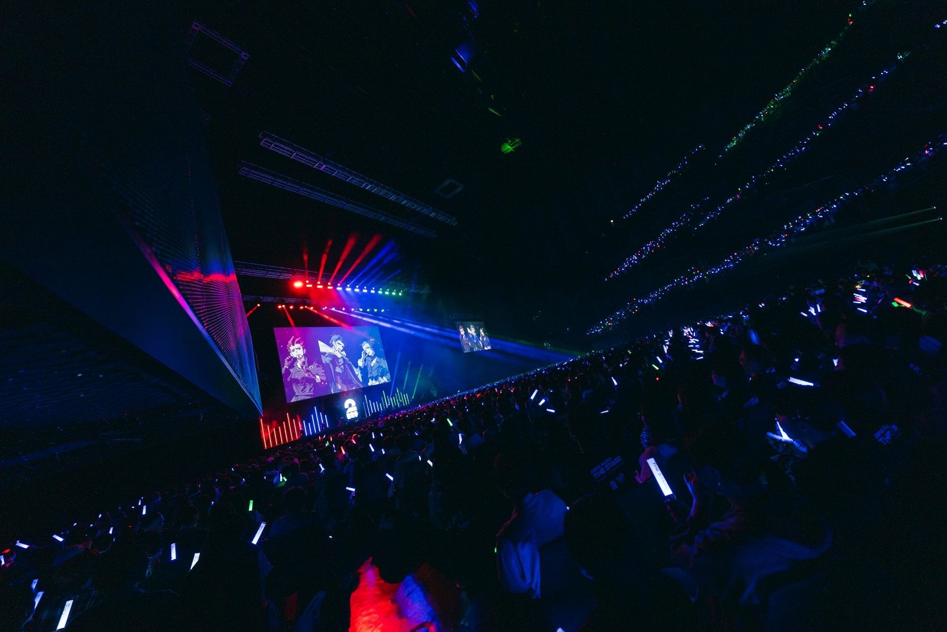 そして、第1部の後半にはイラストレーターのORIHARAさんによる3人の新たなイラストを解禁。モニターに最新のイラストが映し出されると、会場からは割れんばかりの歓声が巻き起こりました。