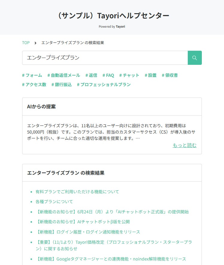 TayoriがFAQにもAI機能を搭載。FAQ検索ワードからAIが汲み取り回答
