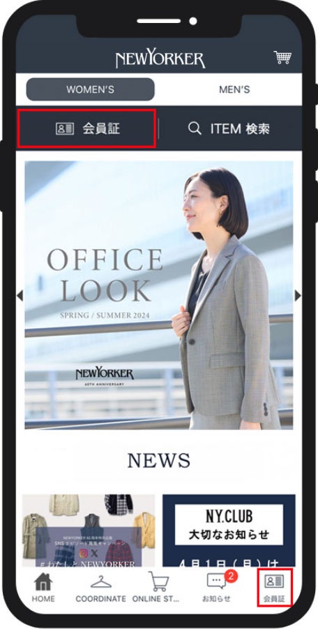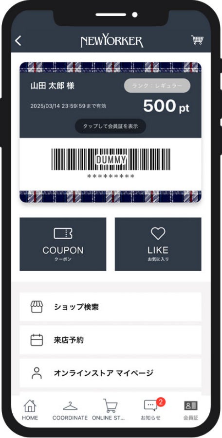 『NY.CLUB』は、公式オンラインストア「NYオンライン」、全国のニューヨーカー、ニューヨーカーアウトレット、アトラエルの店舗でご利用いただける会員プログラムです。